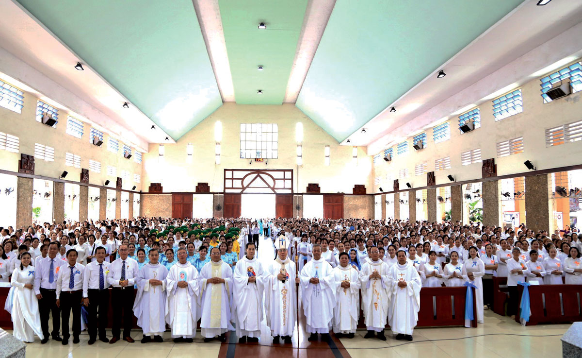 Mục tiêu tối hậu của việc tận hiến là để Chúa sử dụng đời ta như khí cụ mang Ngài đến với người khác. Đức Mẹ cưu mang Đức Giêsu không để giữ riêng cho mình, nhưng để mang niềm vui, ơn cứu độ đến cho tha nhân như khi đi thăm bà Êlisabét hay chuyển cầu trong tiệc cưới Cana. Cũng vậy, người tận hiến hôm nay không chỉ lập công, mà phải trở thành người phục vụ, người hiệp hành, người được sai đi đến với người đau khổ, nghèo khó, bị bỏ rơi. Sống như Mẹ, sống trọn ơn gọi của người đã được rửa tộiTận hiến không chỉ dành riêng cho tu sĩ hay những người khấn dòng. Mỗi Kitô hữu, từ giây phút lãnh nhận Bí tích Rửa Tội, đã được mời gọi dâng mình, hiệp thông với sứ mạng của Giáo hội. Đức Mẹ trở thành mẫu gương và người đồng hành cho hành trình đó: luôn âm thầm, luôn lắng nghe, luôn lên đường. Xin Mẹ dạy chúng ta sống đời tận hiến bằng những việc nhỏ nhất: một lời cầu nguyện âm thầm, một hy sinh lặng lẽ, một hành động yêu thương cụ thể giữa đời thường. Thánh lễ tiếp tục với lời nguyện tín hữu và phần Phụng vụ Thánh Thể. Kết nối tình hiệp thông - lan tỏa sứ mạngTrước khi Thánh lễ kết thúc, vị trưởng Liên miền Sài Gòn đã có báo cáo ngắn gọn: Tính đến năm 2023, Gia đình Tận hiến Dòng Mẹ Chúa Cứu Chuộc hiện có 64.904 hội viên trên 17 giáo phận. Riêng tại TGP Sài Gòn đã có 6.451 hội viên thuộc 10/14 giáo hạt - một dấu chỉ sống động cho sức sống tận hiến nơi lòng Giáo hội Việt Nam. Trong lời cảm ơn đầy xúc động, vị đại diện bày tỏ lòng tri ân sâu sắc đến Đức Tổng Giám mục Giuse, các cha đồng tế, các tu sĩ, Hội đồng Mục vụ giáo xứ, các đoàn thể và ân nhân, những người đã âm thầm góp phần để ngày lễ được tổ chức trang nghiêm, sốt sắng và tràn đầy ân sủng. Tạ ơn và lên đườngKết thúc Thánh lễ, cộng đoàn đón nhận phép lành trọng thể từ Đức Tổng Giuse trong tâm tình Năm Thánh hành hương và hy vọng. Những bức hình lưu niệm rạng rỡ nụ cười được chụp lại như một dấu ấn đức tin, một khởi đầu mới cho hành trình dấn thân. Trong bữa tiệc thân tình sau lễ, mọi người cùng sẻ chia niềm vui như một gia đình - nơi từng người dù khác biệt, vẫn cùng nhau sống một lý tưởng: "Dâng Mình như Đức Mẹ, sống trọn sứ mạng Tận Hiến". Bài: Thế Long (TGPSG)