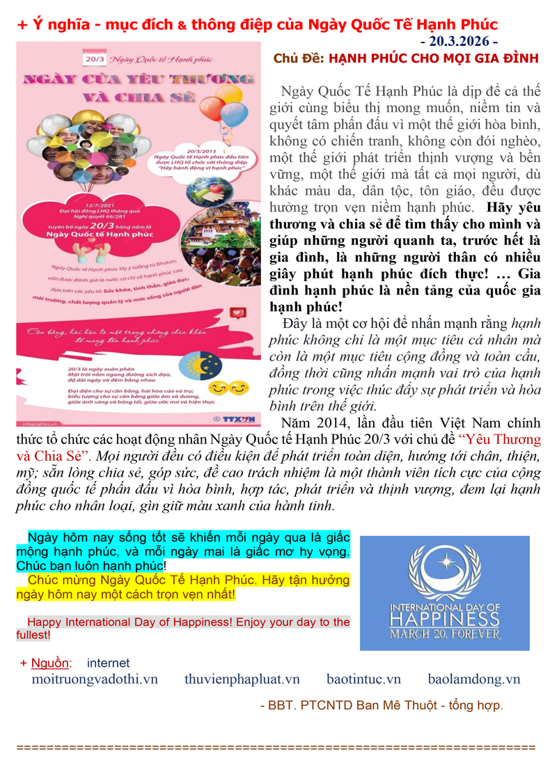 NGÀY QUỐC TẾ HẠNH PHÚC