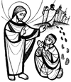 rồi đến sấp mình dưới chân Chúa Giêsu và tạ ơn Người, mà người