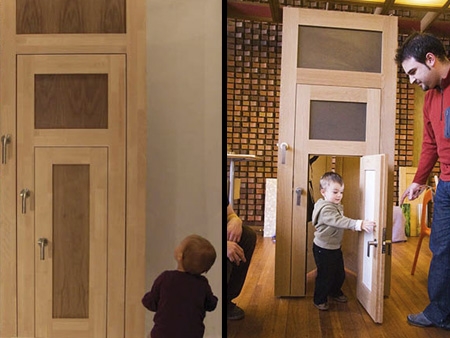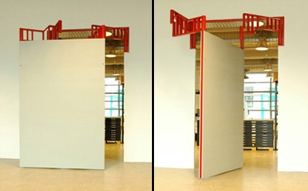 Đây là thiết kế cửa Lotty Lindeman. Nó vừa là tường vừa là là cửa. Thực chất thì bạn chắng thế biết được đâu mới là mục đích chính của nó. Một thiết kế tuyệt vời cho không gian hẹp Cửa 3 trong 1