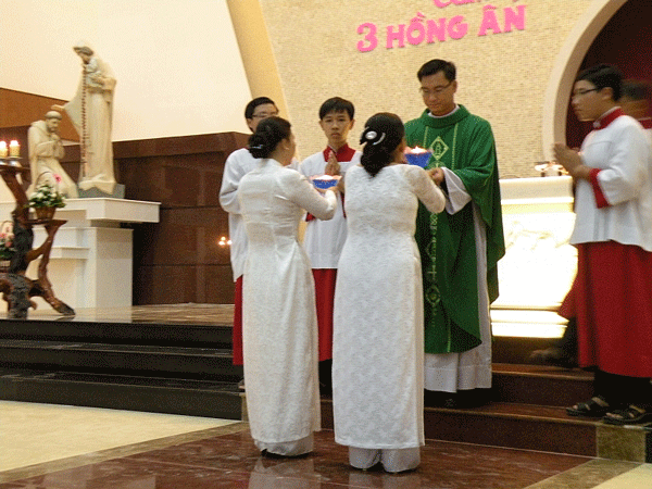 Gia đình Tận Hiến giáo xứ Kẻ Sặt cũng được diễm phúc nhận ngày lễ Đức Mẹ sầu bi là bổn mạng, và kết hợp với nhà Mẹ trong ngày lễ bổn mạng hôm nay. Hàng năm cũng vào dịp lễ Đức Mẹ Sầu Bi, là anh chị em Gia đình Tận Hiến giáo xứ Kẻ Sặt, vẫn xin lễ kính thánh bổn mạng để anh chị em cùng noi gương bắt chước các nhân đức của Mẹ. Đã gần đến giờ lễ mà ngoài trời vẫn còn đang mưa, anh chị em của 15 gia đình các giáo xứ trong miền Hố Nai đã kịp đến để cùng hiện diện tham dự thánh lễ, cùng cầu nguyện và chúc mừng đến các anh chị gia đình Kẻ Sặt nhân dịp ngày mừng kính thánh bổn mạng. Gia đình Tận Hiến giáo xứ Kẻ Sặt đã thành lập được hơn 20 năm qua, được quý Cha rất quan tâm ưu ái chăm sóc nâng đỡ, và cho các anh chị được sinh hoạt hàng tuần trong nhà thờ, các anh chị em trong gia đình Kẻ Sặt vẫn hằng thao thức làm sao để góp phần của mình vào trang miền Hố Nai, để chia sẻ những sinh hoạt của gia đình với anh chị em ở khắp các miền, và ngày lễ kính thánh bổn mạng năm nay là nhân dịp thuận tiện để chia sẻ với các anh chị. |