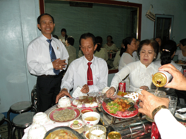 | Sau thánh lễ anh chị em gia đình Kẻ Sặt đã mời các anh chị ở lại chung vui với gia đình, một số các anh chị đại diện cho 15 gia đình các giáo xứ đã đến chúc mừng và liên hoan tại nhà anh Xuân Dậu trưởng ban phục vụ, cùng có mặt trong bữa tiệc liên hoan có ông Giuse Phạm Hoàng Anh là phó nội thường vụ ban hành giáo giáo xứ Kẻ Sặt, cũng đến để chung vui và chúc mừng ngày lễ kính thánh bổn mạng gia đình Tận Hiến giáo xứ Kẻ Sặt. Trong bữa tiệc liên hoan tất cả các anh chị được ban phục vụ gia đình Kẻ Sặt tiếp đãi ân cần chu đáo, ngay từ những phút giây đầu tiên khi chúng em vừa đến. Chúng em được biết rằng trong bữa tiệc liên hoan hôm nay, chị Maria Phạm Thị Tâm phó 2 của ban phục vụ, lãnh nhận trách nhiệm là chị nuôi cùng một số anh chị, đã tự tay chế biến những món ăn cho chúng em được một bữa ăn rất ngon miệng, chia tay nhau ra về ngoài trời vẫn còn mưa nho nhỏ, từng cơn gió lùa se lạnh nhưng trong lòng mỗi anh chị em đều được sưởi ấm trong tình anh chị em con của Mẹ. |
