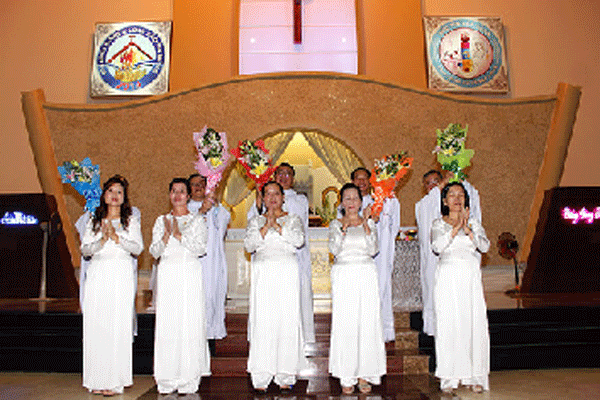Cuối lễ, một Chị đại diện Gia đình Tận Hiến giáo xứ đã thay mặt cảm ơn và tri ân Cha đặc trách Miền Hố Nai, quý Cha đồng tế, quý Thầy phụ trách bằng những bó hoa tỏ lòng hiếu thảo và biết ơn cho tất cả những tâm tình gửi trọn. Thay lời cho Cha đặc trách và Thầy phụ trách. Quý Cha Dòng Đồng Công cũng cám ơn tất cả những anh chị em Gia đình Tận Hiến Giáo xứ Kẻ Sặt… Anh Chị Em là những cánh tay nối dài của nhà Dòng trong việc sống tận hiến đi theo linh đạo của Dòng Đồng Công. Anh chị đã nhận bổn mạng là Mẹ Đau Thương thì anh chị cũng hãy noi gương và bắt chước Mẹ, luôn xin vâng trong mọi hoàn cảnh, luôn sống tin yêu và cậy trông nơi Mẹ Maria. Xin chúc mừng. Mừng lễ Đức Mẹ Sầu Bi hôm nay, chúng ta đã được an ủi rất nhiều khi học được nơi Mẹ những kinh nghiệm về sự đón nhận nghịch cảnh. Khi ấy hãy ngước nhìn lên Thánh Giá, trải lòng cho Đức Giêsu đi qua đến mọi khía cạnh cuộc đời, vì hãy an tâm khi chúng ta đã có Mẹ Maria cảm thông. Chúng ta hãy gắn bó với Mẹ luôn luôn để sống trọn vẹn lời xin vâng với Thiên Chúa, xin vâng khi vui lẫn khi buồn, xin vâng trong mọi hoàn cảnh, và xin vâng đến trọn cuộc đời. Lạy Mẹ Sầu Bi, xin thương chúc lành cho tất cả chúng con. Xin Mẹ đỡ nâng và thêm sức cho những ai đang chịu đau khổ, để họ vững lòng cậy trông nơi Chúa và tìm thấy hi vọng trong hành trình cuộc đời. Amen. |